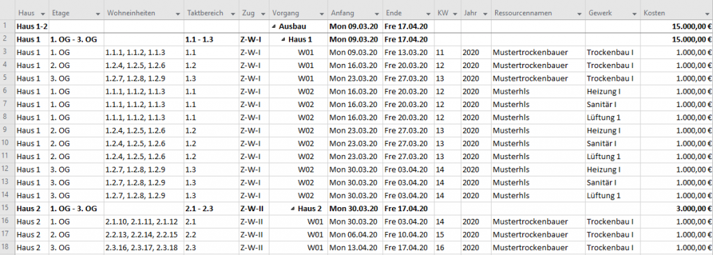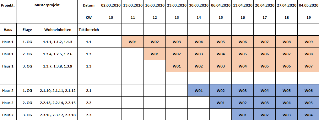 Wir nähern uns den einzelnen Anwendungsfällen. Der nächste Post wird sich mit der Erstellung eines für die Baustellen und Nachunternehmer nutzbaren Taktplan und den Taktsteuerungsdokumenten aus der Datenbank heraus befassen. Dieser, für die zuständigen Mitarbeiter aufwendige und daher häufig vernachlässigte Schritt ist einer der ersten Akzeptanzbringer bei den Anwendern.
